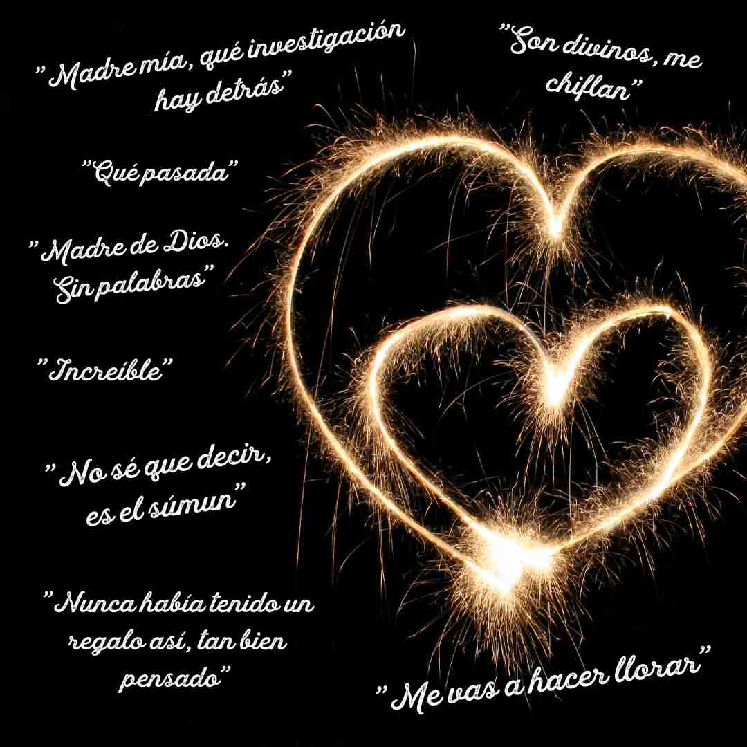 "me vas a hacer llorar", "Madre de Dios, sin palabras", "esto es una una maquinación", "qué pasada, nunca había tenido un regalo así tan bien pensado", "no sé qué decir, es el súmmum, increíble" "madre mía, qué investigación hay detrás"...