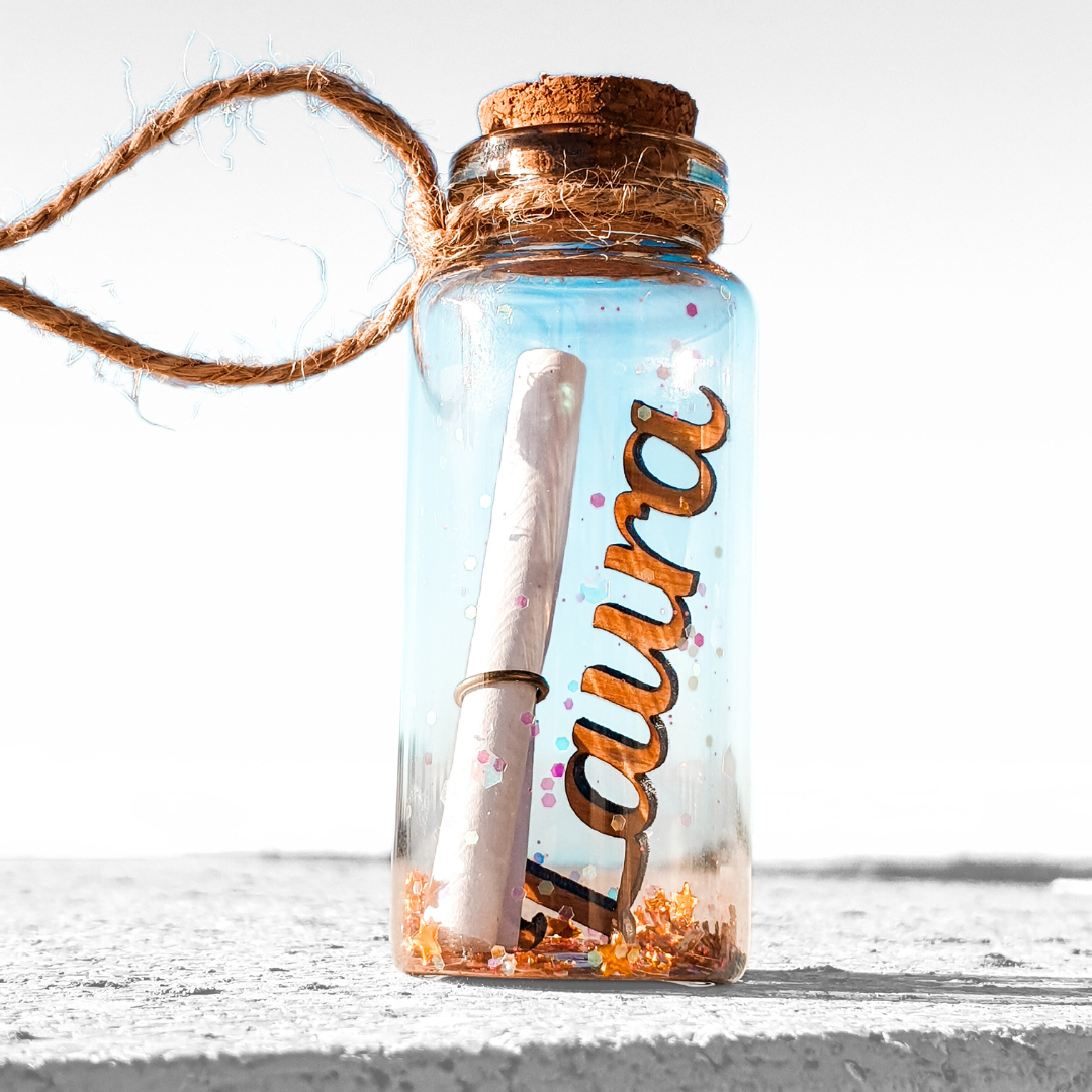 ¡Como las galletitas de la suerte! Pero en una miniatura de botellita con encanto.