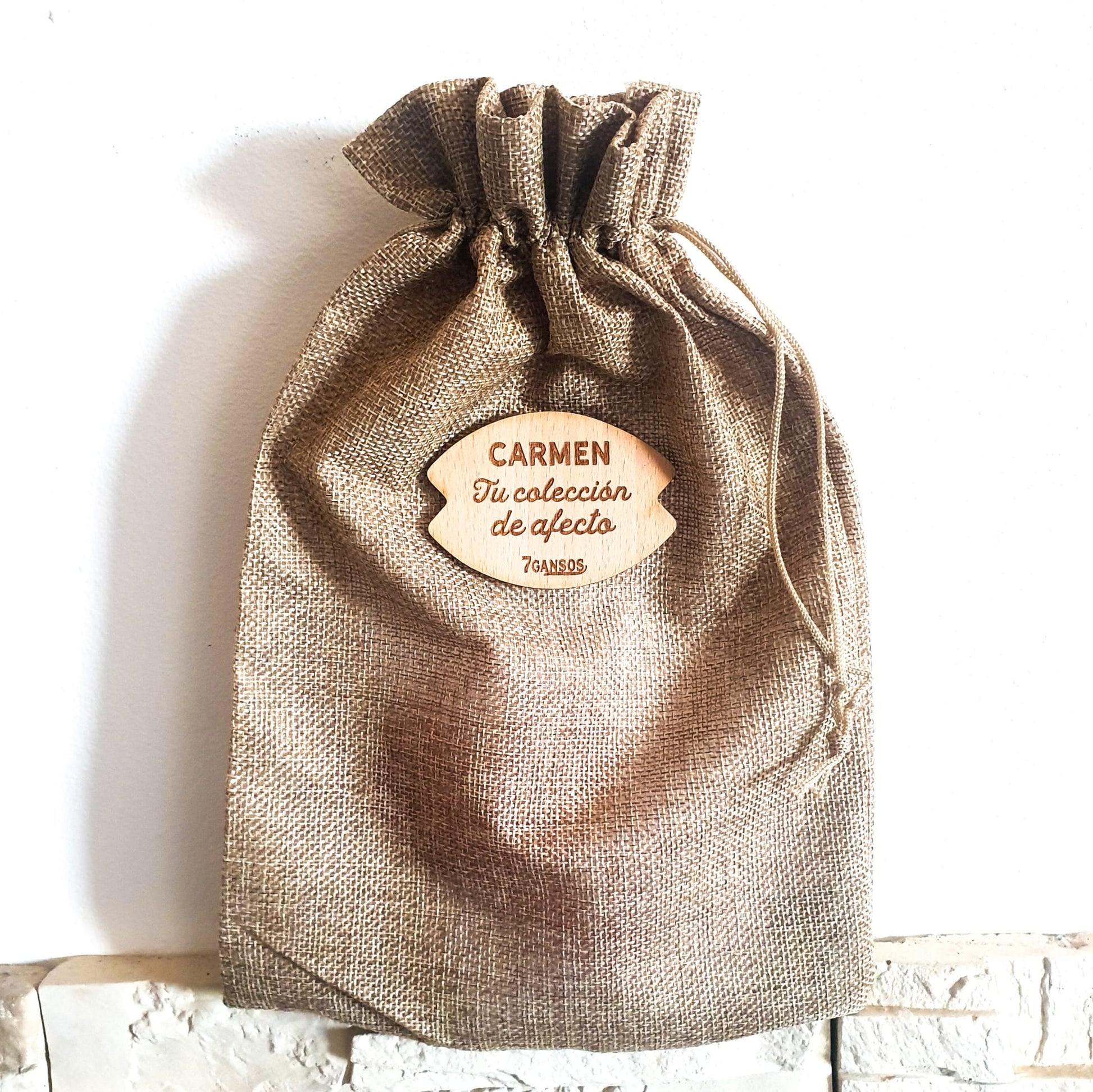 INCLUYE un saco personalizado donde guardar las postales así como otros pequeños objetos que queráis conservar de ese día