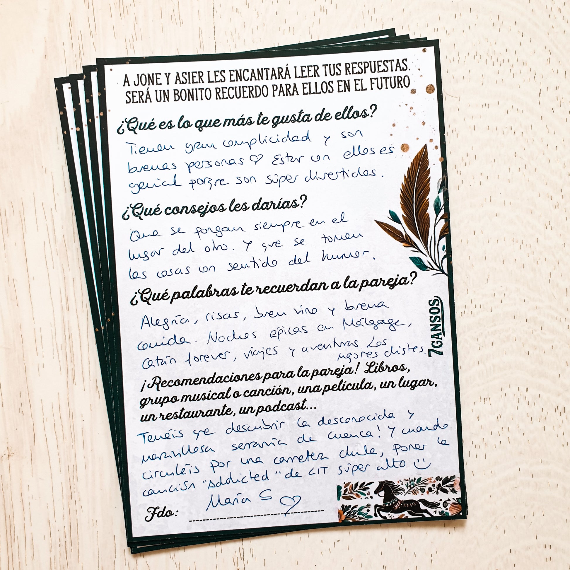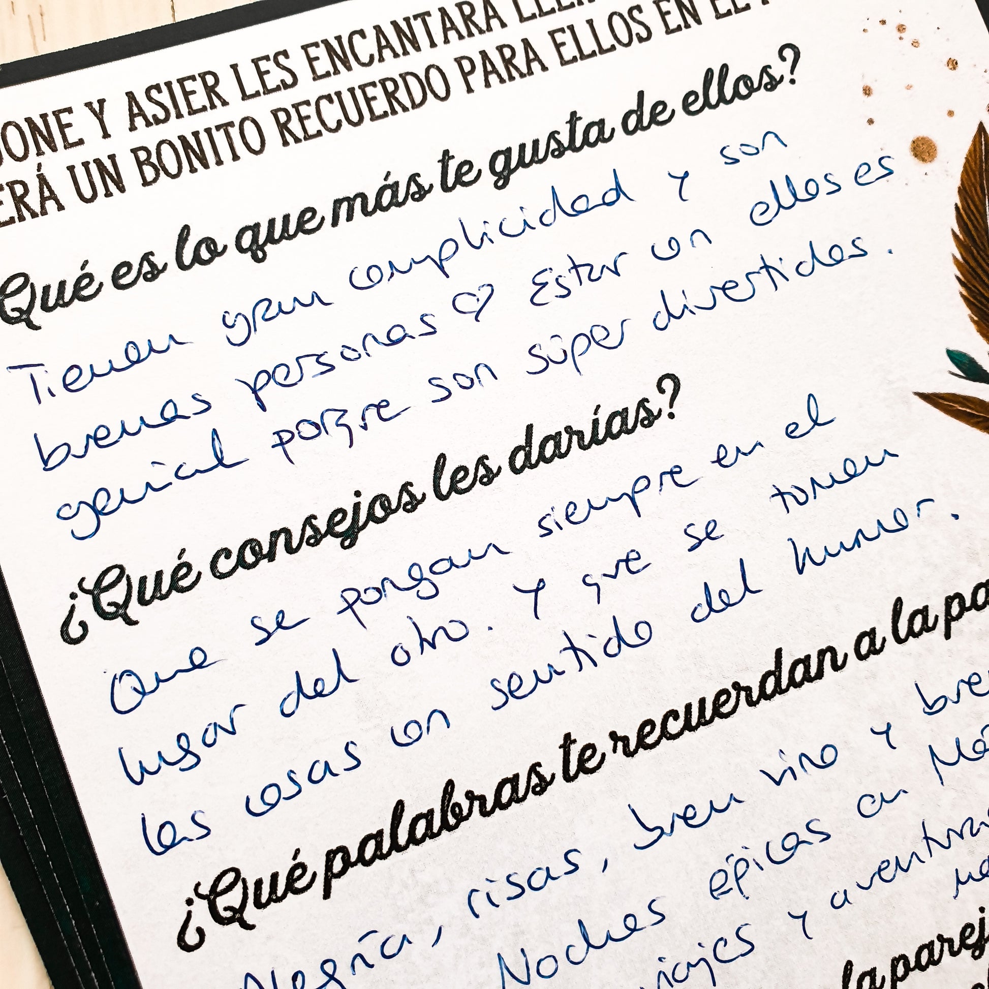 Son preguntas fáciles de responder pero muy significativas. Pasaréis un momento increíble leyendo lo que os han escrito todos vuestros seres queridos.