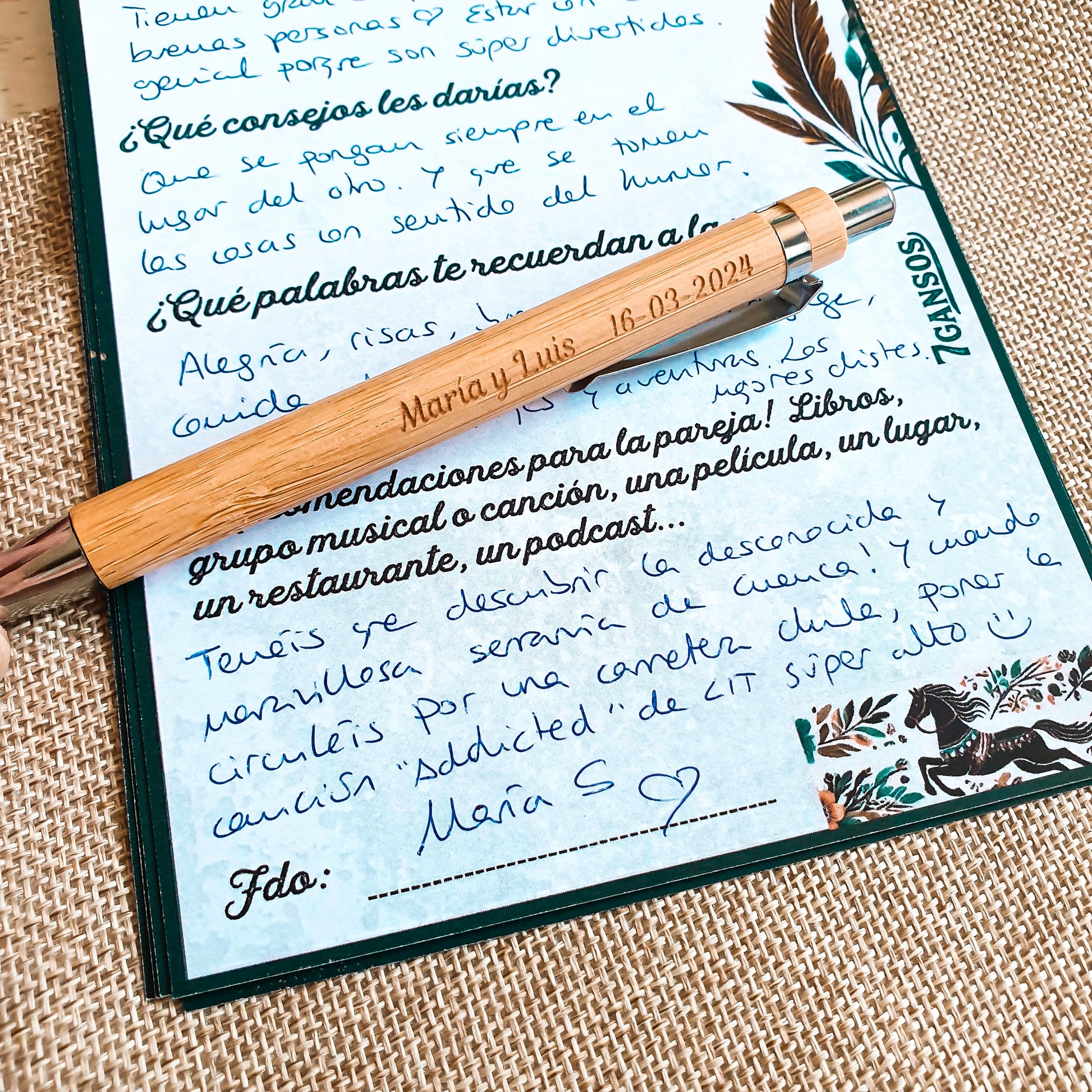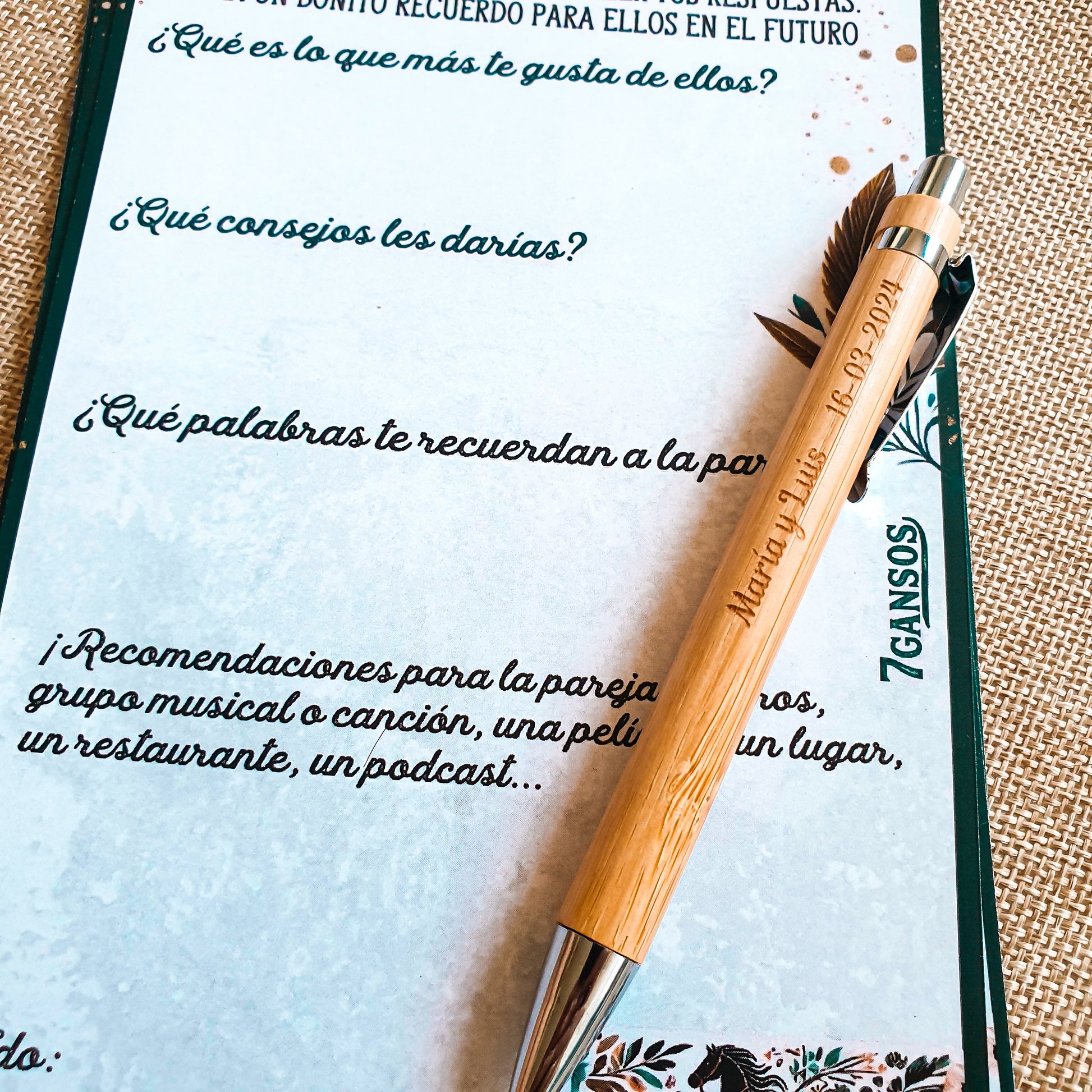 OPCIONAL entregarlas con el bolígrafo grabado para que rellenen todo y además se lo queden de recuerdo.