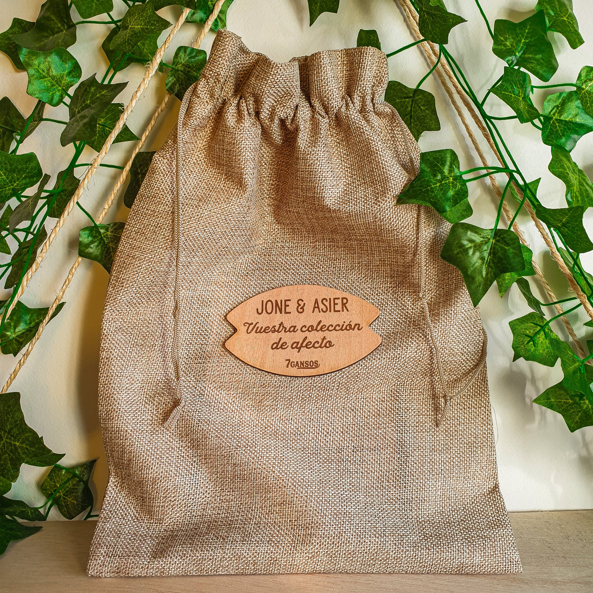 INCLUYE un saco personalizado donde guardar las postales así como otros pequeños objetos que queráis conservar de ese día