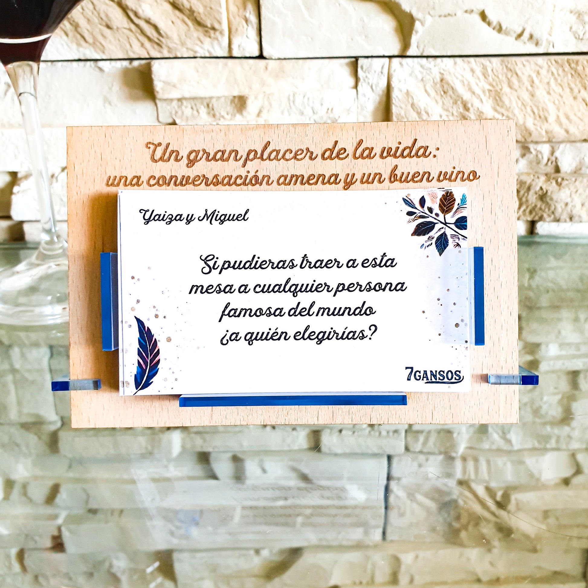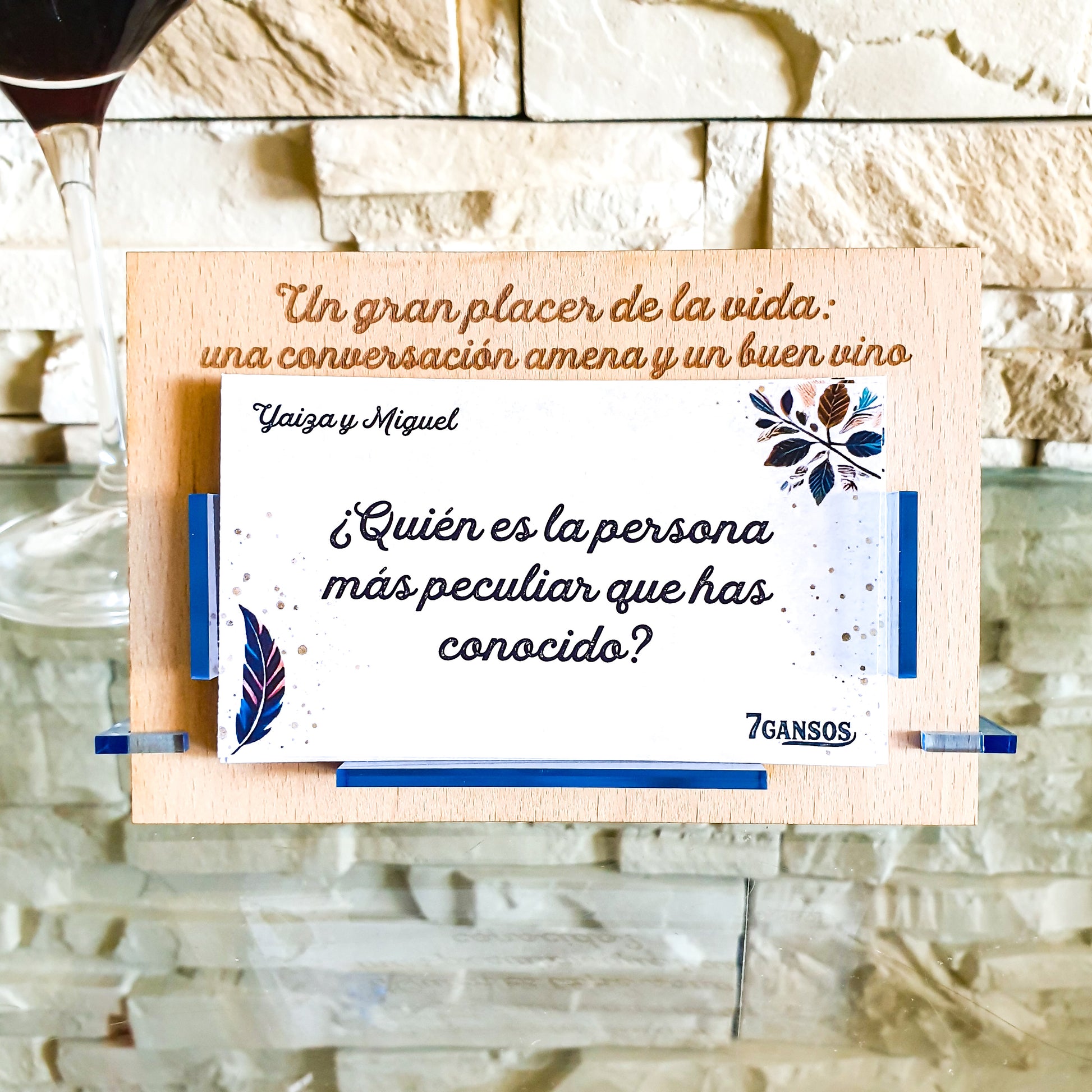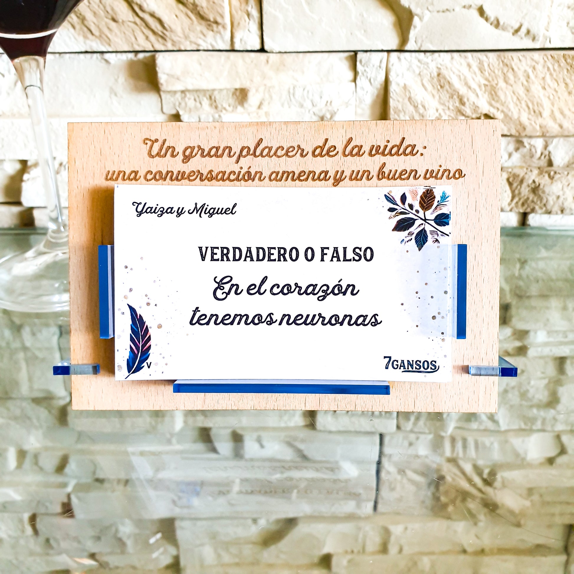 21 tarjetas. Incluye el soporte de madera grabado (que mide 12,5 x 9cm). Se emplean 10 días laborables en su realización (recibelo en 5-7 días laborables) Si te urge más, sólo tienes que escribirnos.